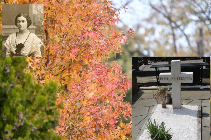 Beli spomenik u formi krsta na čijoj prednjoj strani je uklesano Isidora Sekulić, a zadnjoj 1877-1958. uz stazu parcele broj 2 na Topčiderskom groblju svojom čistotom i jednostavnošću otkriva skromnost i dostojanstvo velike srpske književnice, prve žene imenovane za dopisnog člana Srpske akademije nauka i umetnosti.