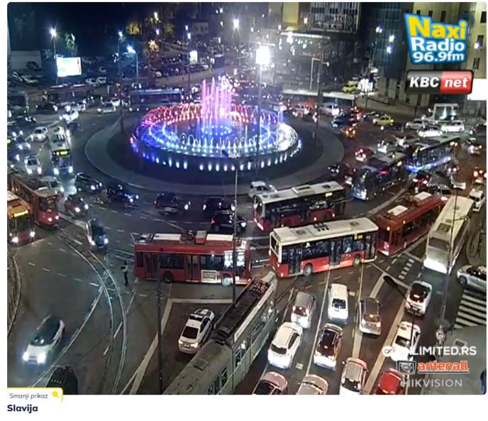Kako se vidi na snimcima sa gradskih kamera, automobili se sporo kreću na najfrekventnijim saobraćajnim pravcima.Sve se crveni i na Autokomandi i svim prilazima tom kružnom toku.