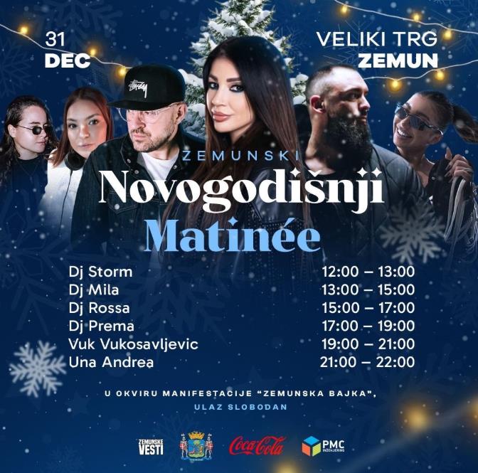 Nastupaju od 12 do 13 sati di-džej Storm, od 13 do 15 di-džej Mila, od 15 do 17 di-džej Rossa, od 17 do 19 di-džej Prema, od 19 do 21 Vuk Vukosavljević i od 21 do 22 časa Una Andrea.
