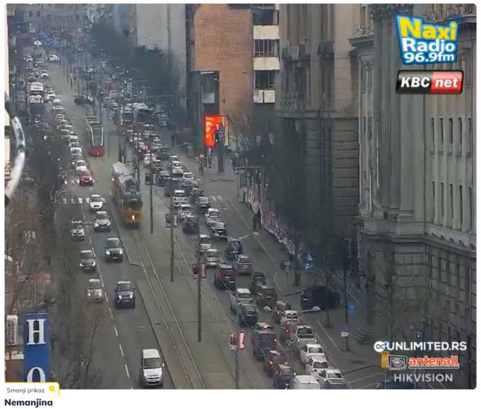 Te su gužve, kako se može videti na gradskim kamerama, primetne su u Nemanjinoj ulici, u oba smera, kao i na Trgu Vukov spomenik, gde je krcato prema Brankovom mostu. Slična situacija je i na Mostu na Adi, gde je gužva na pristupnim putevima prema mostu, dok nazad ka gradu idu sporije vozila.