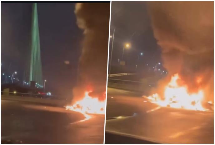 JEZIVI SNIMCI SA MOSTA NA ADI, OD AUTOMOBILA NIJE OSTALO NIŠTA: Izgoreo skroz, rastopio se na asfaltu?! (VIDEO)
