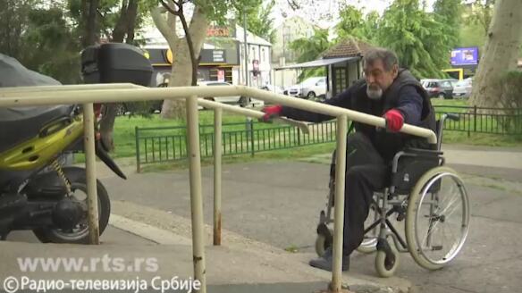 Radiša Jovanović je osoba sa invaliditetom i mesecima nije izašao iz stana. Živi u soliteru od 18 spratova bez odgovarajućeg prilaza za osobe sa invaliditetom, i deli sudbinu još pet komšija.