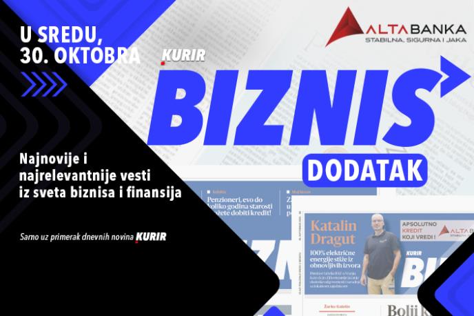 U sredu 30. oktobra očekujte specijalni dodatak posvećen svetu biznisa! Dodatak Biznis će vam doneti sveže informacije iz domena ekonomije, preduzetništva, finansija, tehnologije, nekretnina i berze. Upoznaćete se sa inspirativnim intervjuima sa uspešnim preduzetnicima i direktorima, kao i sa analizama trendova i korisnim savetima za poslovanje. Ne propustite priliku da ostanete informisani i motivisani za nove poslovne poduhvate čitajući Kurir!