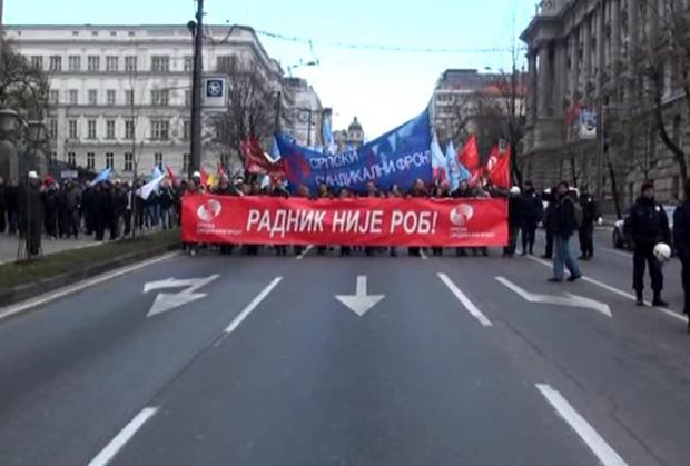 BEOGRAD - U organizaciji Srpskog sindikalnog fronta, "radnički i građanski protest" okupio je danas oko hiljadu ljudi koji su izrazili svoje nezadovoljstvo predlozima zakona o radu i štrajku.