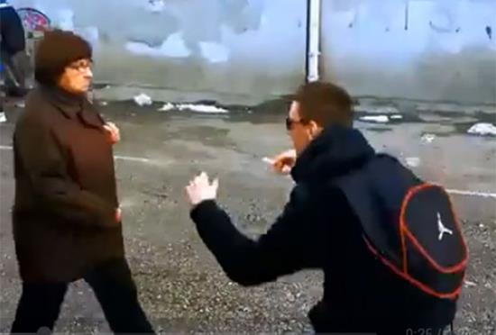 Video snimak pokazuje kako učenici gimnazije, nedaleko od škole simuliraju boks meč i nasrću na prolaznike