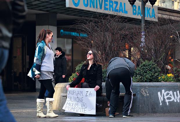 „Skupljam pare za silikone, molim vas, pomozite“. Ovo pišem velikim slovima na ogromnom hamer papiru i krećem u strogi centar Beograda da prosim za silikonske grudi. Mislila sam da mi se to nikad u životu neće desiti, ali, verovali ili ne, savremeno istraživačko novinarstvo podrazumeva svakakva iskustva. A ideja nam je bila da proverimo kako će građani reagovati na osobu koja u centru grada prosi, ali ne za hleb, nego za „osnovno oruđe za rad“ mnogih današnjih devojaka - silikonske umetke.