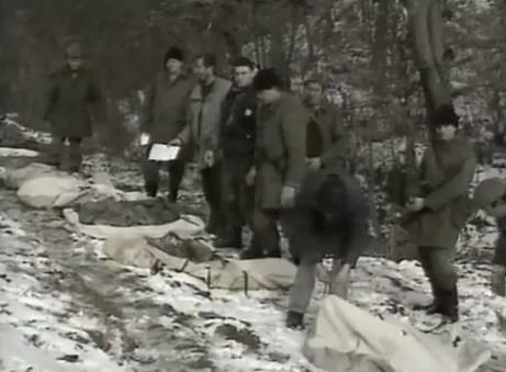 "Ovo je moj brat. Prepoznao sam ga po džemperu. Vidite kako su ga vezali ularom", pruža neimenovani sagovornik ruke ka kameri pokazujući kanap koji je upravo skinuo s raspadnutog leša.