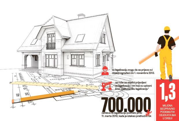 Rok za podnošenje zahteva za legalizaciju bespravno izgrađenih objekata ističe danas, a do pre nekoliko dana bilo je podneto samo nekoliko hiljada zahteva.