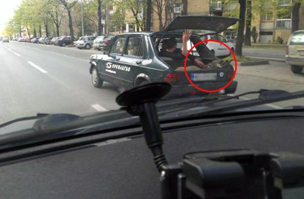Kako se i vidi na fotografiji, osoba na zadnjem sedištu je jednom rukom pridržavala vrata gepeka, a drugom životinju.
