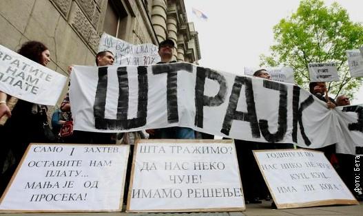 Štrajkači nose transparente na kojima piše "Život nije 30 odsto jeftiniji", "A da vama smanjimo plate 30 odsto". Zaposleni u PIO fondu započeli su štrajk 8. aprila, nezadovoljni odlukom Državne revizorske institucije da im se plate smanje za 30 odsto.