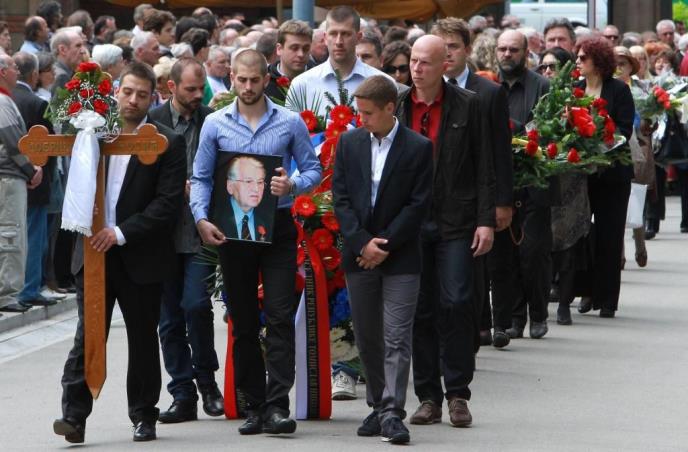 U dugoj koloni ispred kapele u kojoj je episkop Irinej bački služio opelo uz učesće sveštenstva i hora Bogoslovskog fakulteta među dve hiljade ljudi koji su došli da odaju počast srpskom velikanu bili su Emir Kusturica, akadmik Ivan Jevtić, frulaš Bora Dugić, glumice Jelena i Ivana Žigon, Miroslav Mišković, Milorad Vučelić, Dragan Đilas.