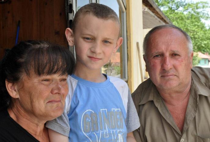 Baka Koviljka Obradović (56) iz Kostajnika, sela kod Krupnja, već sedmi dan iz ruku ne ispušta unuka, malog Slavka. Prigrlila ga, pritegla, privija ga uza se i samo plače ko kiša. Stegla Slavka ko da će sad odozgo niz selo da naiđe bujica, da ponovo zgrabi dečačića...