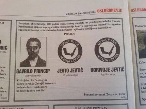 SARAJEVO - U sarajevskom dnevnom listu Oslobođenje jutros je osvanuo pomen Gavrilu Principu i vidovdanskim herojima.