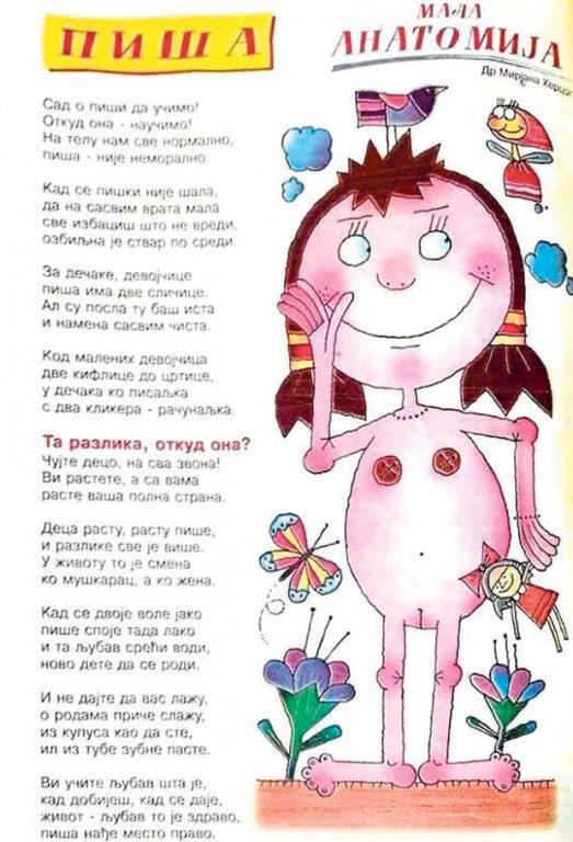 Ovo su prve dve strofe pesme „Piša“, koju je u svojoj knjizi „Mala anatomija“ objavila Mirjana Hercog, doktorka iz Čačka. Prema njenim rečima, ova knjiga namenjena je pre svega roditeljima.