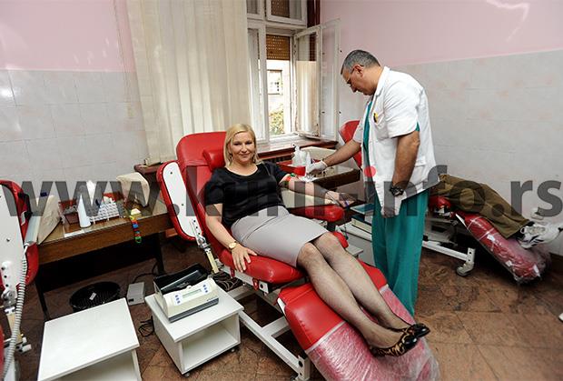 BEOGRAD - Ministar građevinarstva, saobraćaja i infrastrukture Zorana Mihajlović dala je danas krv u Institutu za transfuziologiju u Beograda i pozvala šefa delegacije Evropske unije Majkla Devenporta, direktore javnih preduzeća i novog upravnika Ateljea 212 Branimira Brstinu da urade isto.