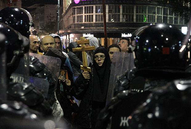 00.30 Uprkos pozivu Boška Obradovića, zamenika predsednika Pokreta Dveri, jedan broj pristalica odlučio je da ostane u centru Beograda. Oni sede na asfaltu na Terazijama i odbijaju da se pomere i propuste saobraćaj. Među njima je i jedan sveštenik.