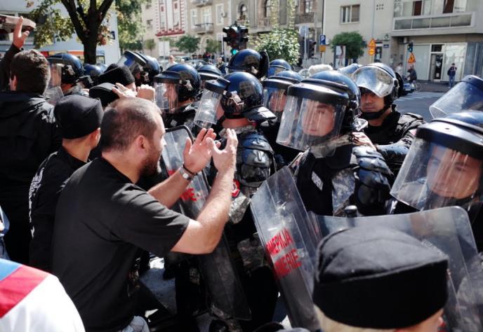 (FOTO) KAMENICAMA NA POLICIJU: Protivnici Prajda pokušali da se probiju do šetača