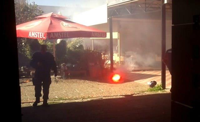 Oko zgrade se i dalje vidi gust dim, teško se diše, a huligani su se razbežali i krenuli ka Merkatoru.