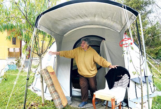 - Krečili smo tri puta, ali vlaga opet izbija. Stara sam, ruke mi otkazuju, ali popravljamo šta možemo, kad će se više zidovi osušiti?! - pita se Milanka i pokazuje unutrašnjost šatora s odećom i knjigama spasenim iz poplava, u kome je bila do pre nekoliko dana.