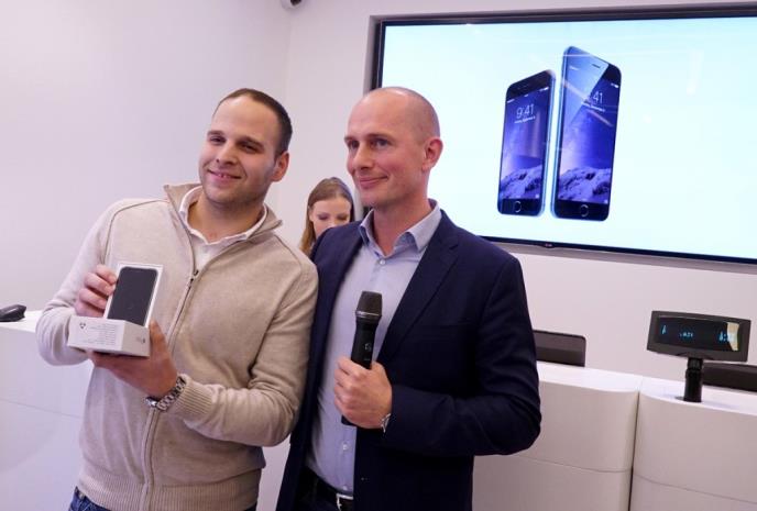 Mikel Nosgard, izvršni direktor marketinga u Telenoru, imao je čast da prvom kupcu uruči iPhone 6.