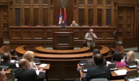 Zbog rasprave o slobodi medija u maloj sali Skupštine Srbije, hol tog najviše zakonodavnog tela, gde novinari obično prate raspravu i čekaju izjave poslanika je prazan.