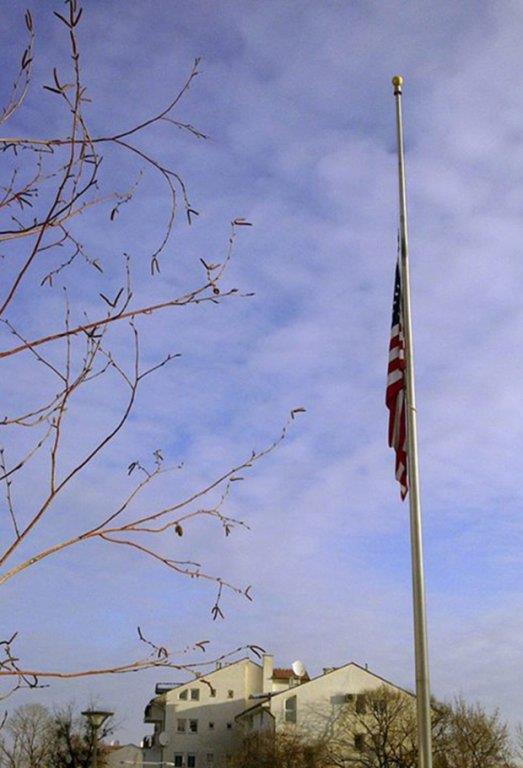 DAN ŽALOSTI U SRBIJI: Na američkoj ambasadi spuštena zastava na pola koplja