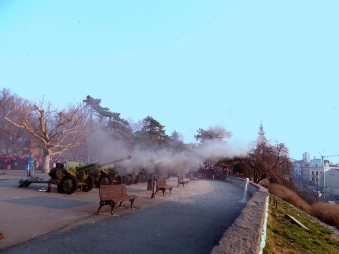 BEOGRAD - Povodom Dana državnosti Srbije, pripadnici Garde Vojske Srbije izvršili su danas počasnu artiljerijsku paljbu sa Kalemegdana u Beogradu.
