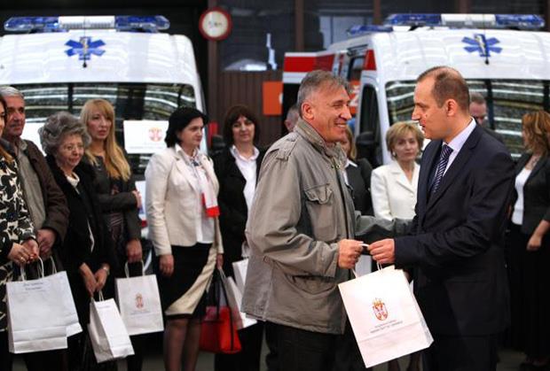 BEOGRAD - Ministar zdravlja Zlatibor Lončar uručio je ključeve 34 specijalizovana vozila za službe hitne medicinske pomoći predstavnicima 24 domova zdravlja i Gradskom zavodu za hitnu medicinsku pomoć u Beogradu.