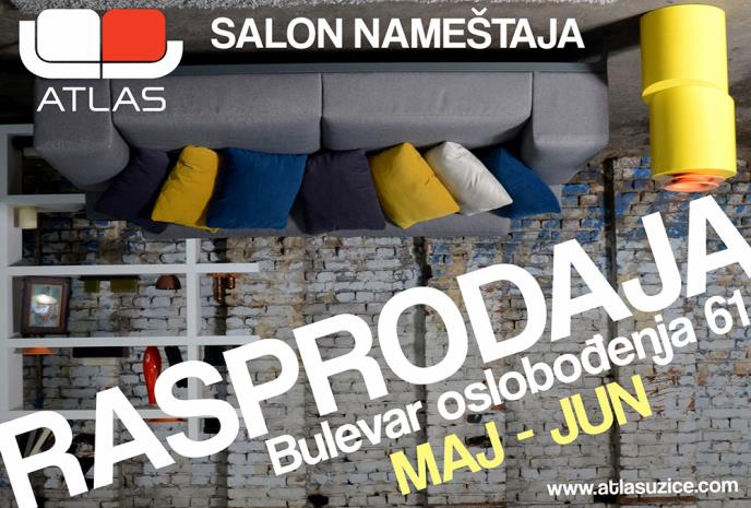 Tim povodom ATLAS nameštaj nastavlja RASPRODAJU eksponata u svom postojećem salonu u Beogradu, u Bulevara Oslobođenja 61, preko puta restorana Franš. Ovo je ujedno jedinstvena prilika za sve naše prijatelje i potrošače da do kraja juna kupe komade nameštaja ili asesoare koje su dugo priželjkivali, po još nižim cenama u odnosu na majske.