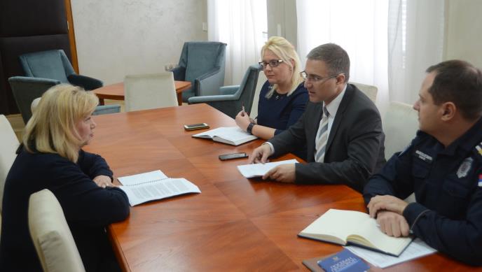 Ministar Stefanović je tokom sastanka upoznao gošću sa inicijatijom MUP-a za dopunu Zakonika o krivičnom postupku, koja će narednih dana biti upućena nadležnom ministarstvu, kako bi se omogućila efikasnija reakcija policije u slučajevima porodičnog nasilja.