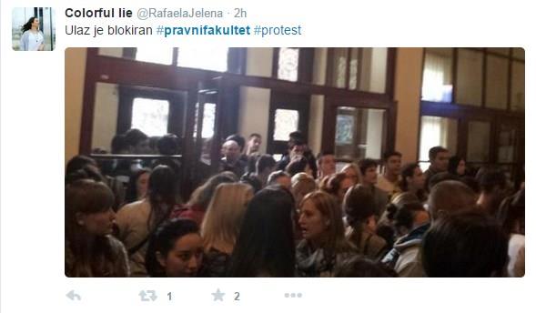 "Uprava nije ispunila naše zahteve i mi smo u 15 časova počeli smo blokadu", poruka je studenata Pravnog fakulteta u Beogradu, koji su protest počeli u 12, a onda tri sata kasnije blokirali ovu visokoškolsku ustanovu.