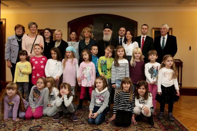 Deca iz vrtića ''Vukovar 2'' doputovala su u ponedeljak u trodnevnu posetu Beogradu u pratnji vaspitača, a juče ih je u Patrijaršiji primio patrijarh Irinej, a predsednik Srbije Tomislav Nikolić u Predsedništvu.