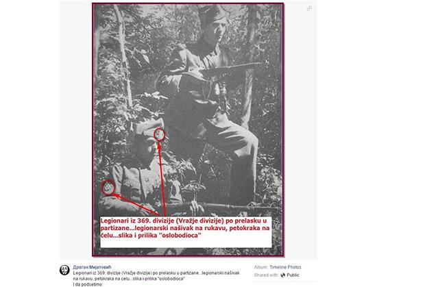 Fotografija koja kruži svim društvenim mrežama prikazuje dva vojnika obučena u ustašku uniformu sa oznakama 369. Vražije divizije od kojih se jednom vidi legionarski našivak na rukavu, a petokraka na kapi koju nosi