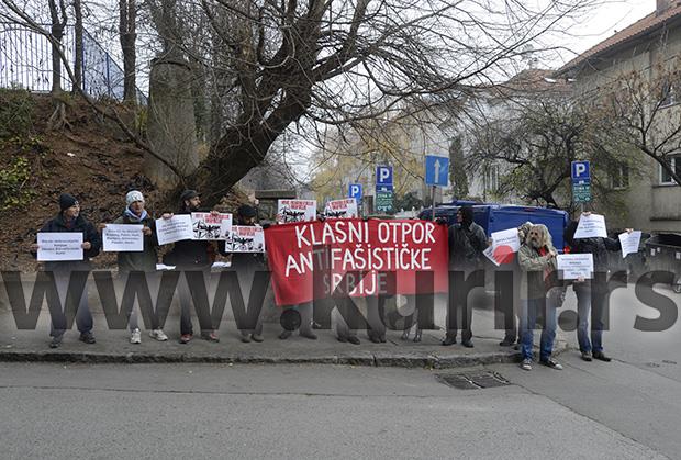 Istovremeno, ispred zgrade Višeg suda okupila se grupa građana koji su nosili transparent "Klasni otpor antifašističke Srbije" i poručili da bi rehabilitacija značila prekrajanje istorije.