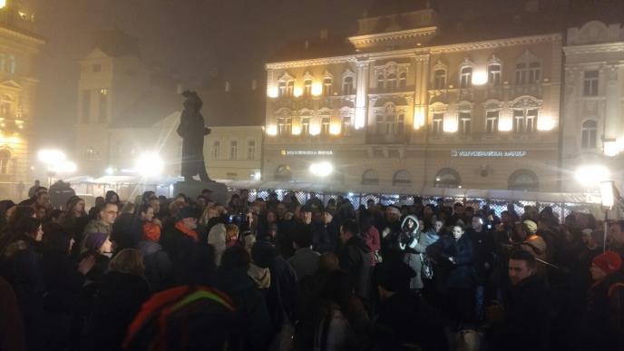 Protest je održan na prepunom Trgu slobode, gde su se okupili novinari raznih medijskih kuća.