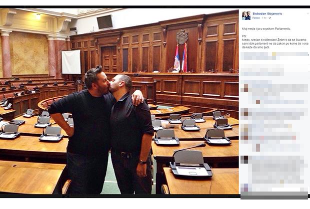 BEOGRAD - Gej aktivista Boban Stojanović objavio je fotografiju prvog gej poljupca u srpskom parlamentu.