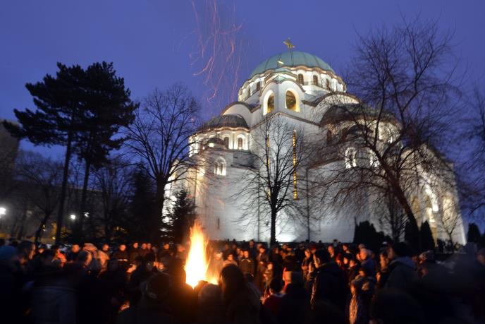 (VIDEO) SRBIJA OBELEŽAVA BADNJE VEČE: Zapaljen badnjak ispred Hrama Svetog Save