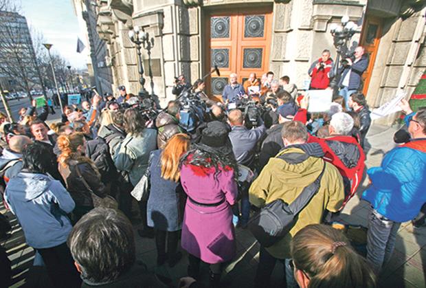 BEOGRAD - Udruženje novinara Srbije (UNS) protestovalo je juče ispred Vlade Srbije sa zahtevom da se sprovedu odredbe Zakona o javnom finansiranju i medijima, koje omogućavaju da neprivatizovani mediji pripadnu zaposlenima.