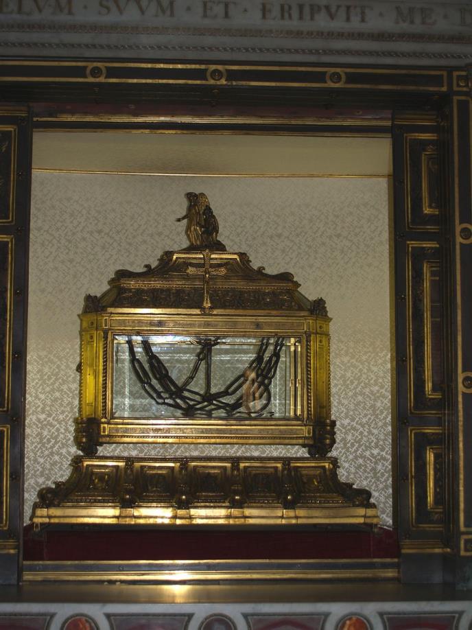 Verige koje su spale sa Petra hrišćani su sačuvali koliko zbog uspomena na svetog Petra, toliko zbog njihove isceliteljske moći. Priča se, da su se mnogi bolesnici izlečili samo dodirnuvši verige (kao i ubrus apostola Pavla kojim su ga brisali dok je bio mučen).