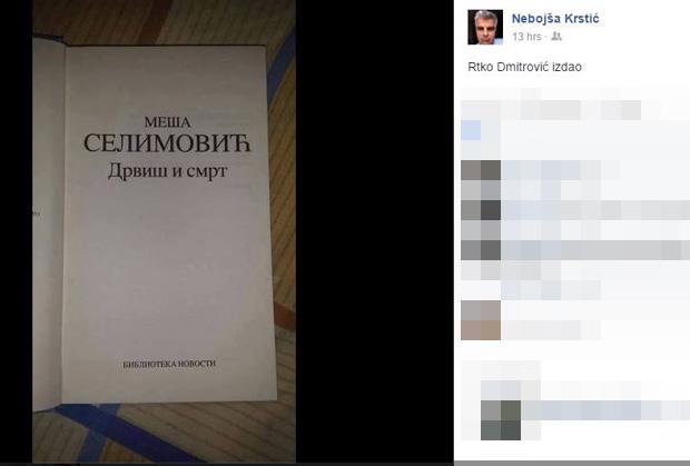 Fotografiju primerka ove knjige objavio je na Fejsbuku Nebojša Krstić, bivši savetnik Borisa Tadića.