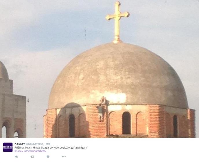 Prištinski mediji objavili su fotografije na kojima se vide dvojica muškaraca kako se penju do najviše kupole nedovršenog pravoslavnog hrama Hrista Spasa u Prištini, što je najoštrije osudio zamenik kosovskog premijera Branimir Stojanović, navodeći da je reč o još jednom od mnogobrojnih skravljenja tog hrama.