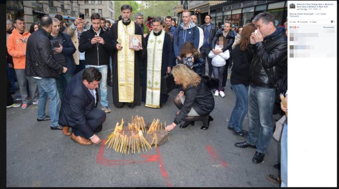 NJUJORK - Veliki broj Srba i vernika Srpske pravoslavne crkve koje žive u Njujorku okupilo se paleći sveće na zgarištu srpske svetinje - njujorške crkve Svetog Save - koju je u nedelju, na sam Vaskrs, progutala stravična vatrena stihija.