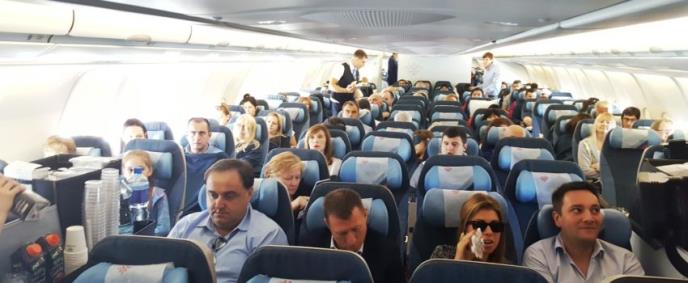 Ubrzo nakon poletanja, uz mnoštvo kamera i medijskih ekipa, direktor Er Srbije Dane Kondić podelio je putnicima sertifikate posebno izrađene povodom prvog leta. Višečlana kabinska posada, iako prvi put na realnom zadatku sa punom kabinom odlično se snalazi i na brzini od 835 km/h pažljivo vodi računa o bezbednosti pa zatim i udobnosti svakog putnika.