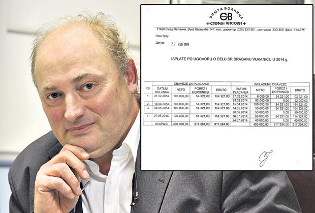 Dr Vukanić, dečji hirurg i urolog, 21. februara 2014. s direktorom bolnice „Stefan Visoki“ dr Perišom Jovanovićem potpisao je ugovor o konsultantskom radu, a bolnica, koja je tada imala dugovanja od 157 miliona dinara, za njegova četiri dolaska isplatila mu je 400.000 dinara, odnosno iskeširala ukupno 617.284 dinara s porezima i doprinosima.