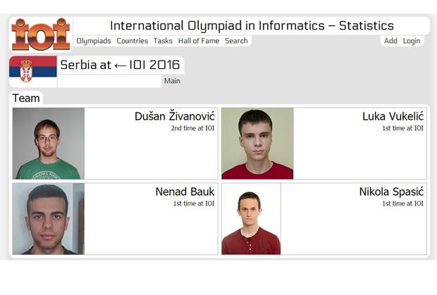 Kako je navedeno, Dušan Živanović iz gimnazije "Svetozar Marković" iz Niša osvojio je sa 373 boda srebrnu medalju, Nenad Bauk iz Matematičke gimnazije iz Beograda, takođe je osvojio srebrnu medalju sa osvojenih 330 bodova, Nikola Spasić iz gimnazije "J. J. Zmaj" iz Novog Sada bronzanu medalju sa 256 bodova, dok je Luka Vukelić iz Matematičke gimnazije osvojio 208 bodova.