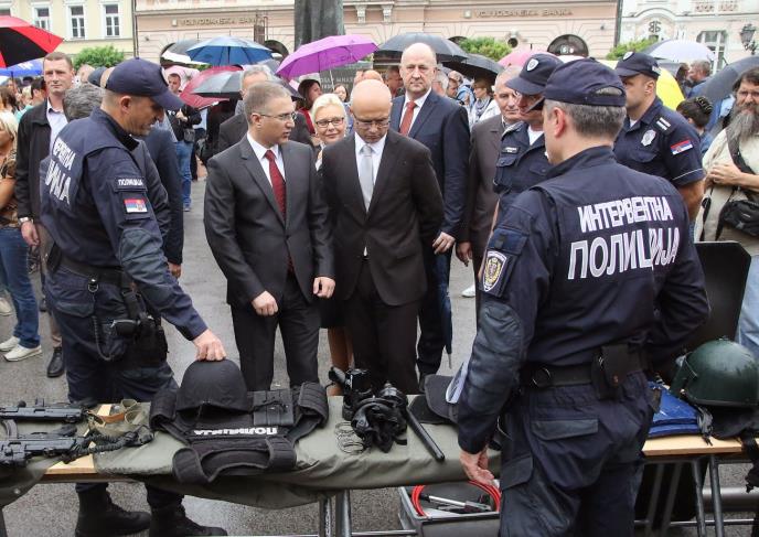 Potpredsednik Vlade Srbije i ministar unutrašnjih poslova Nebojša Stefanović danas je zajedno sa gradonačelnikom Novog Sada Milošem Vučevićem posetio Policijsku upravu Novi Sad gde je izvršena primopredaja opreme - zaštitnih balističkih prsluka (pancir prsluka).