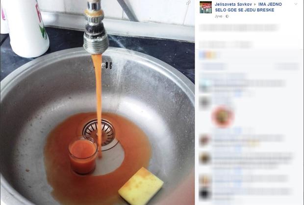 Međutim, jedna takva fotografija nastala je u Čurugu, u opštini Žabalj, na kojoj se umesto bezbojne vode za piće može uočiti tečnost narandžaste boje.