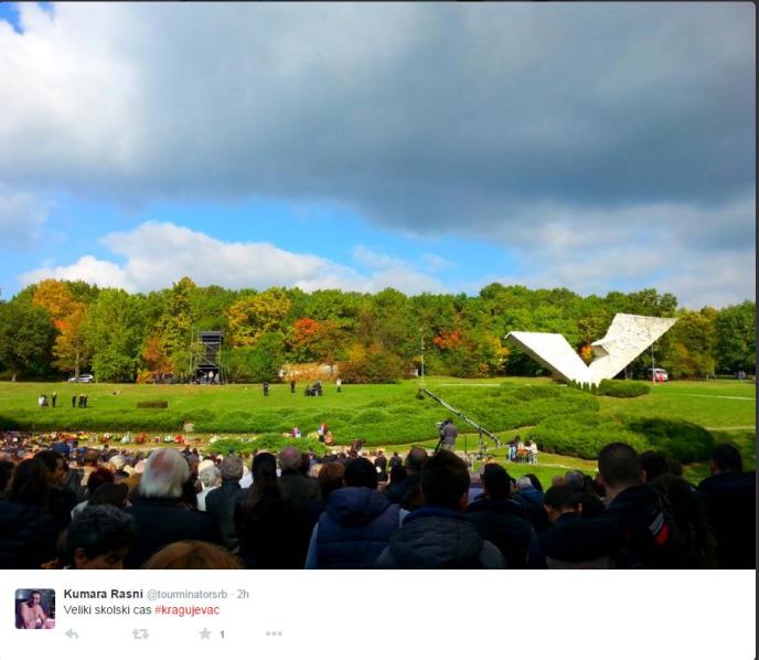 U Šumaricama je u znak sećanja na Kragujevčane streljane 1941. godine održana tradicionalna antiratna manifestacija "Veliki školski čas", kojoj prisustvuje i predsednik Srbije Tomislav Nikolić.