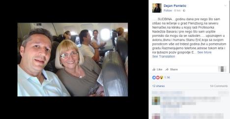 Početkom septembra te 2012. godine odlazim u grad Flenzburg (nisam mogao dugo da zapamtim a kamoli da izgovorim ime grada) na lečenje. Pre odlaska u bolnicu smeštam se u hotel, na preporuku profesorke Basare, koji drže naši ljudi. Do tada nisam znao ko je vlasnik tog hotela. Vrata hotela, pogađate, otvara MOJA Stana Erić, a sve ostalo je istorija", napisao je voditelj na svom profilu.