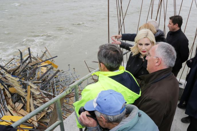LJUBOVIJA - Ministarka građevinarstva, saobraćaja i infrastrukture Zorana Mihajlović obišla je danas radove na mostu preko Drine kod Ljubovije, na kome je srušen deo konstrukcije zbog poslednjih poplava i propuštanja vode iz Hidroelektrane (HE) Bajina Bašta.